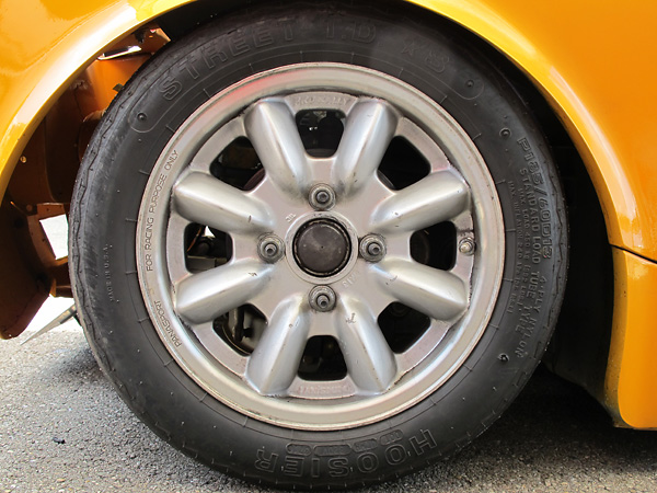 Front: Panasport Racing 13x6 aluminum wheels and Hoosier Street T.D. *S P185/60D13 racing tires. |
