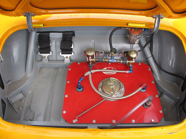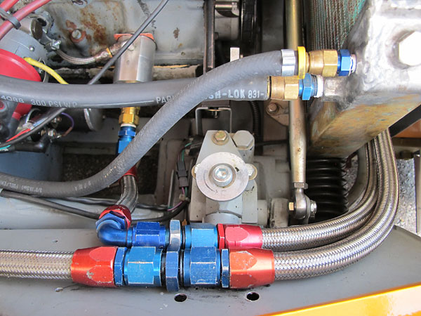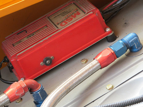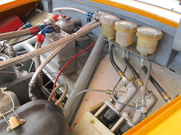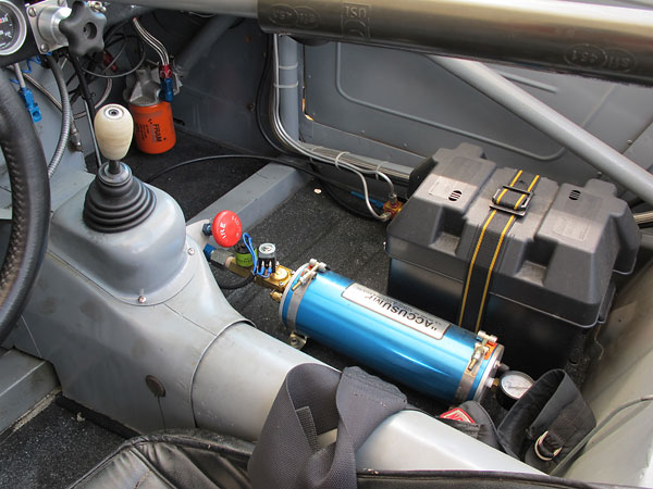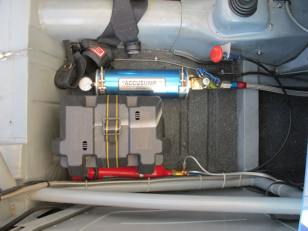 This Accusump oil accumulator is electrically actuated from a toggle switch on the dashboard. |